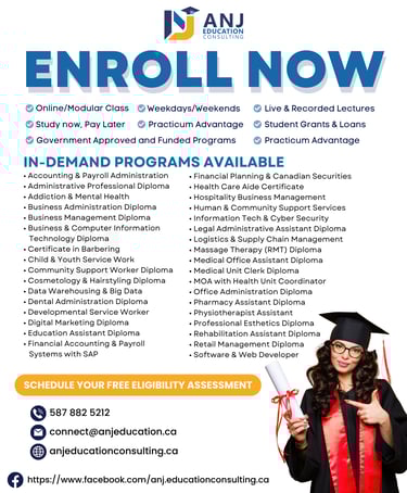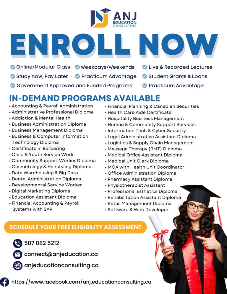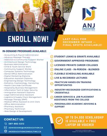 Explore a variety of in-demand programs, approved for government funding and offered by licensed and accredited private colleges across Canada. These programs are designed to equip you with the skills employers need, helping you advance your career or grow your own business. These post-secondary programs are available for both local and international students, with the admission process varying by college and program. Contact us for more details on the next intake and how to apply.